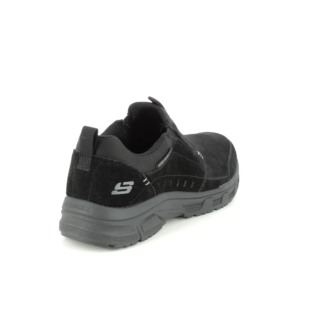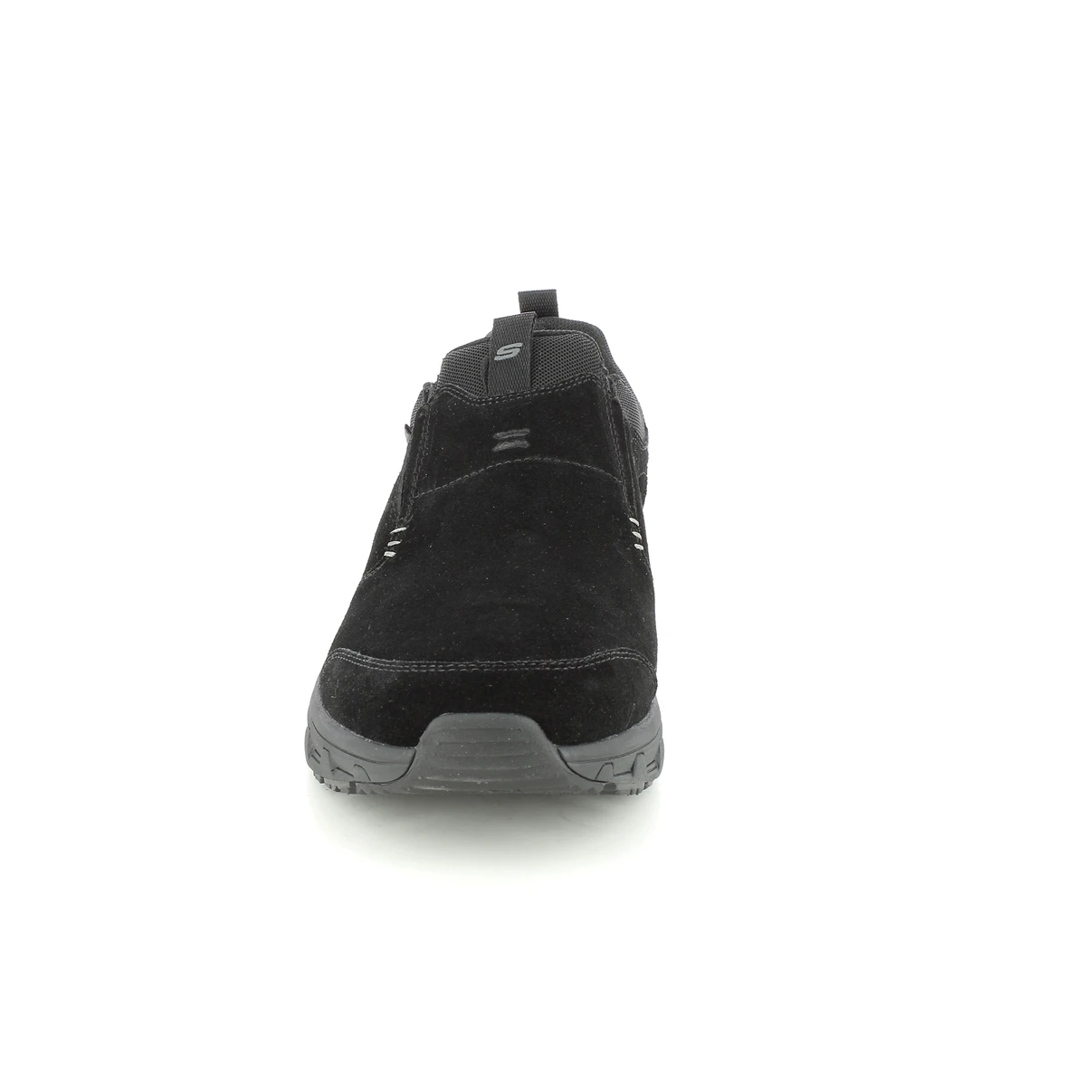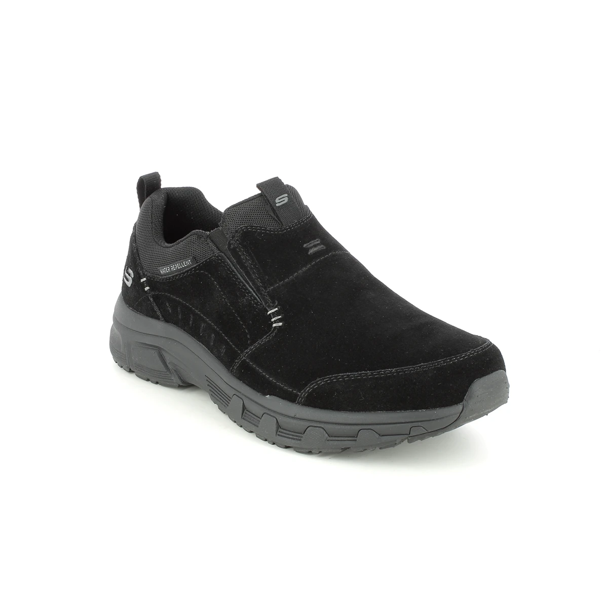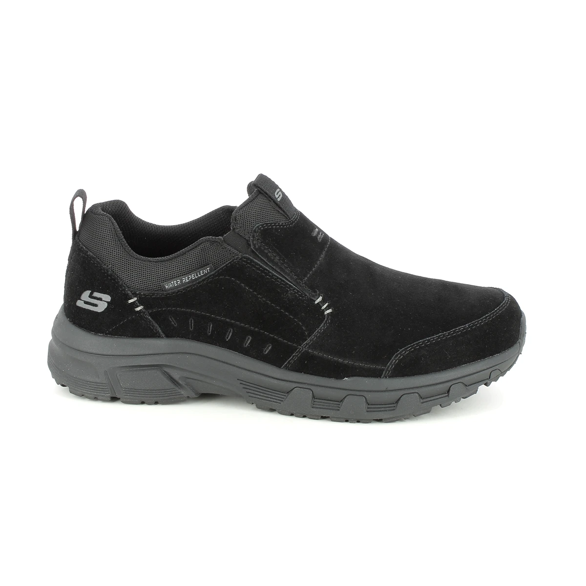 Skechers 237282 OAK CANYON SLIP ON mens shoes are casual and supportive. The popular Skechers Oak Canyon trainers have been reimagined in an easy slip-on style. These wide fit Skechers feature a black suede leather upper with a padded mesh fabric trim around the collar. There are twin elastic gussets and finger tabs for an easy slip-on fit whilst the padded memory foam footbed offers superb comfort underfoot. The slip on Skechers have a water repellent membrane designed to help keep your feet dry and the Skechers Relaxed Fit design offers extra width or additional space for orthotics.