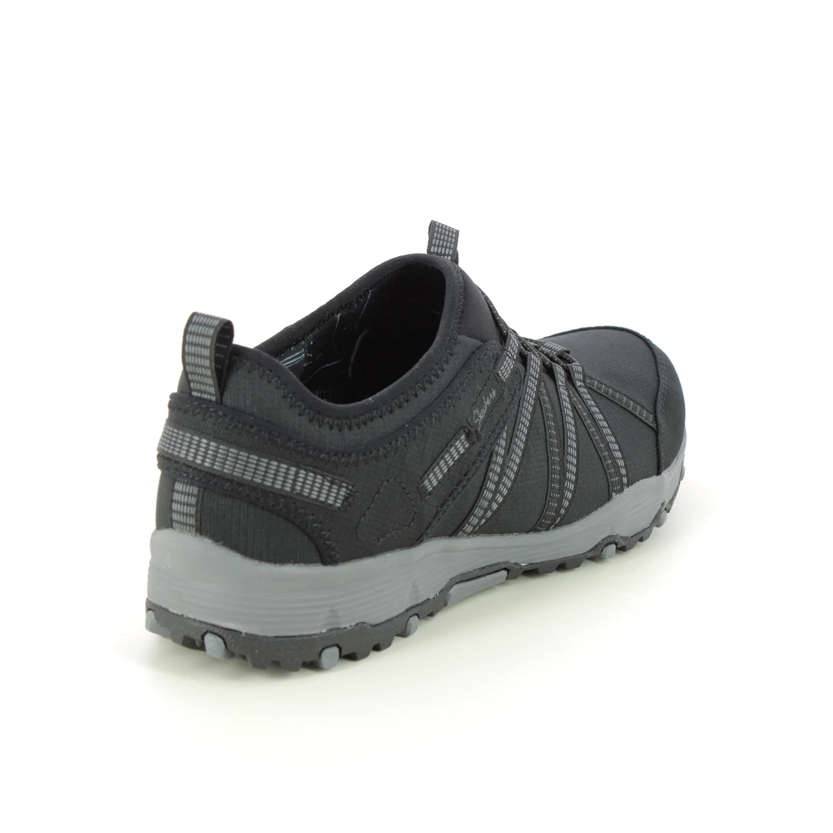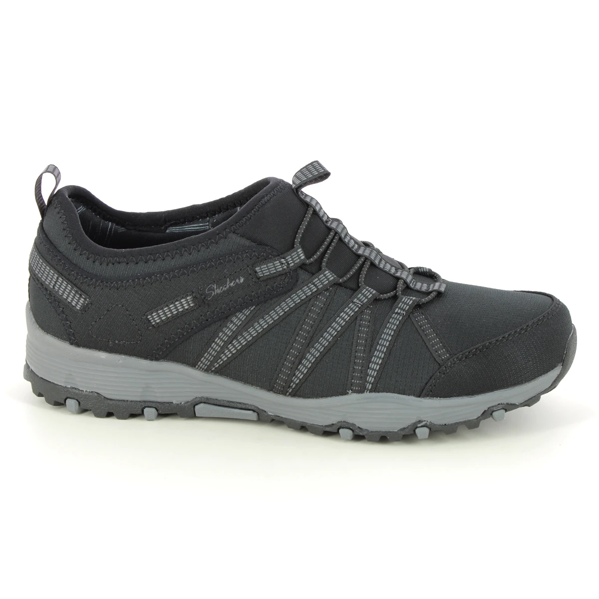 Skechers Seager Hiker 2 women’s black slip on trainers are comfortable and versatile. These women’s Vegan Skechers have a man-made upper with bungee lace fastening and stretchy collar for an easy slip on fit. The water resistant upper helps to keep feet dry whilst the cleated outsole offers improved grip on a variety of surfaces.
