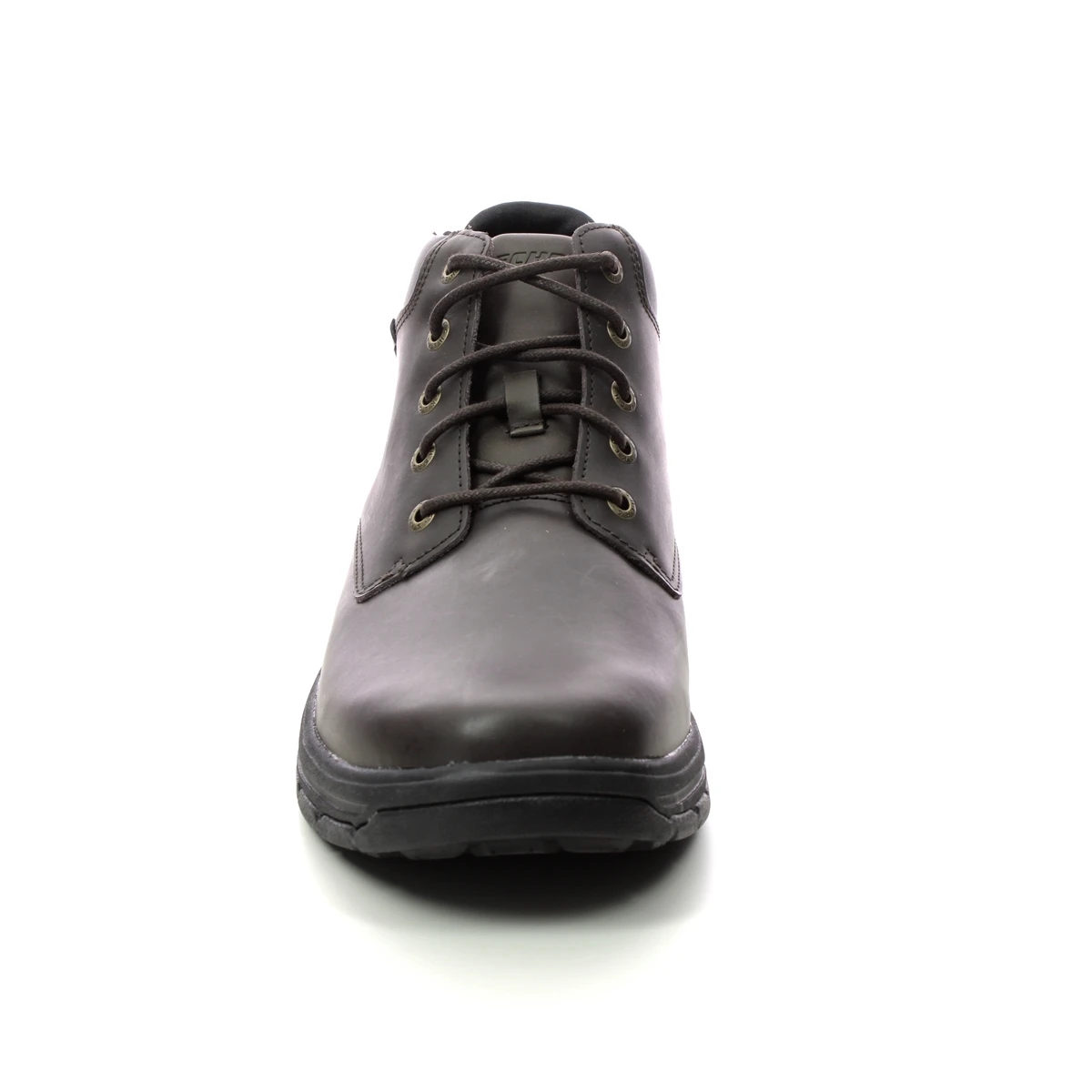 The Skechers Segment 2.0 men’s cocoa brown lace up boots are versatile and durable. These men’s Skechers boots have a smooth leather upper with padded textile lining and an Air Cooled memory foam footbed for extra comfort. Designed with the Skechers Relaxed Fit, these men’s dark brown boots are wider fitting with a hard wearing Goodyear rubber outsole for additional traction.