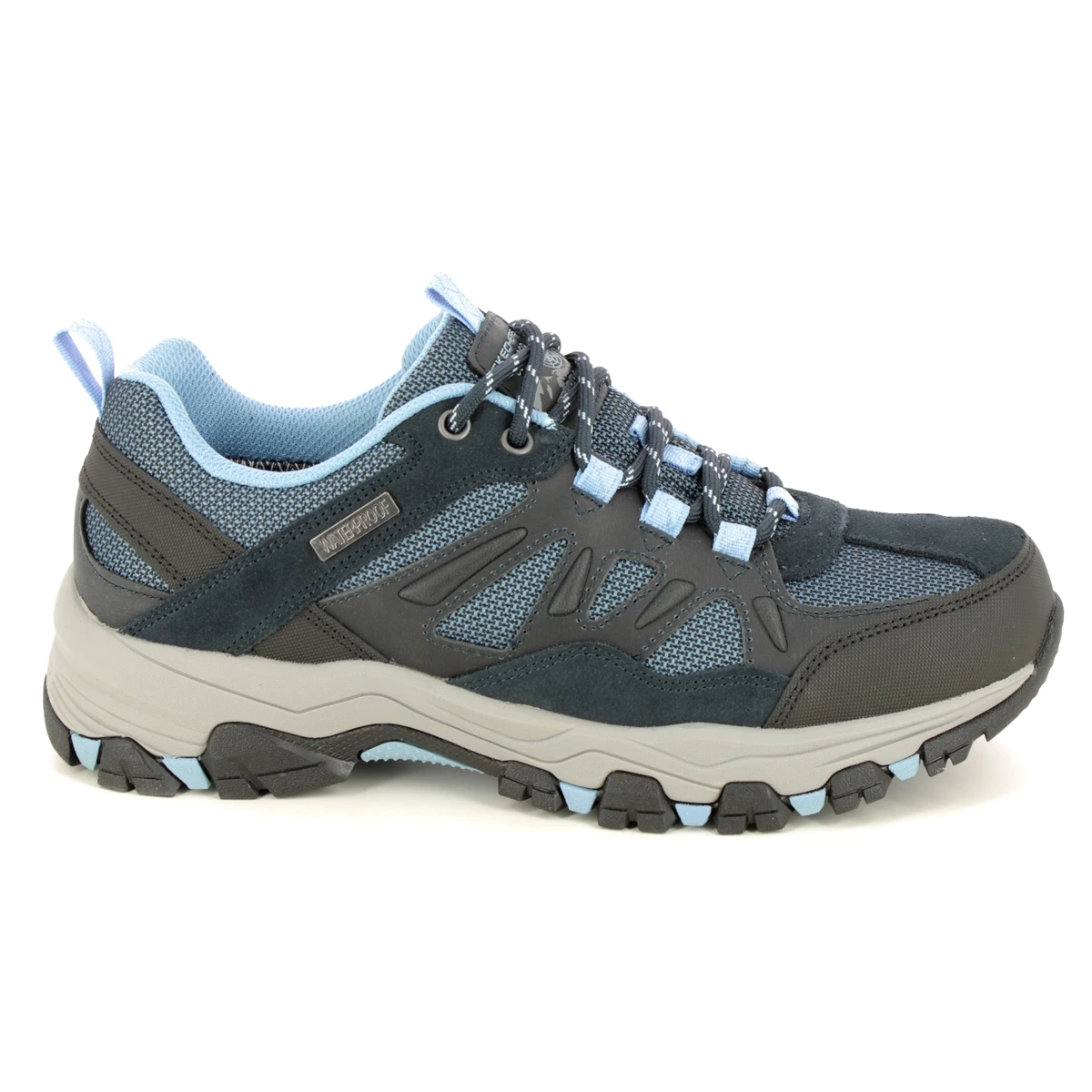 Skechers 167003 Selmen West Tex womens navy walking shoes are made on the wider fitting Relaxed Fit design with an air cooled memory foam footbed and waterproof design.