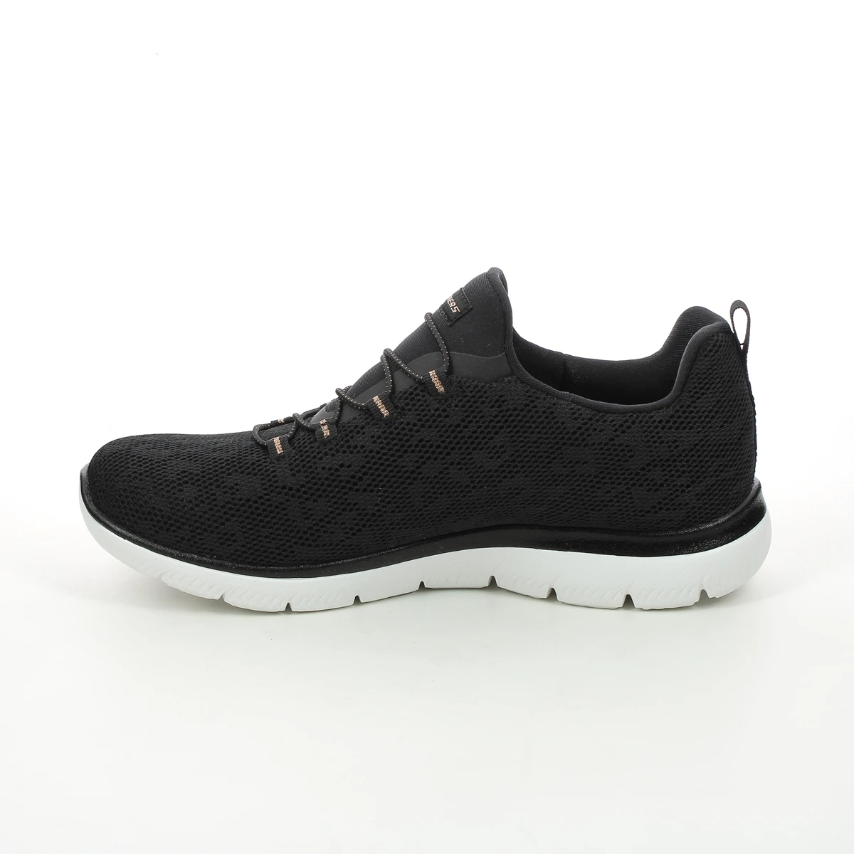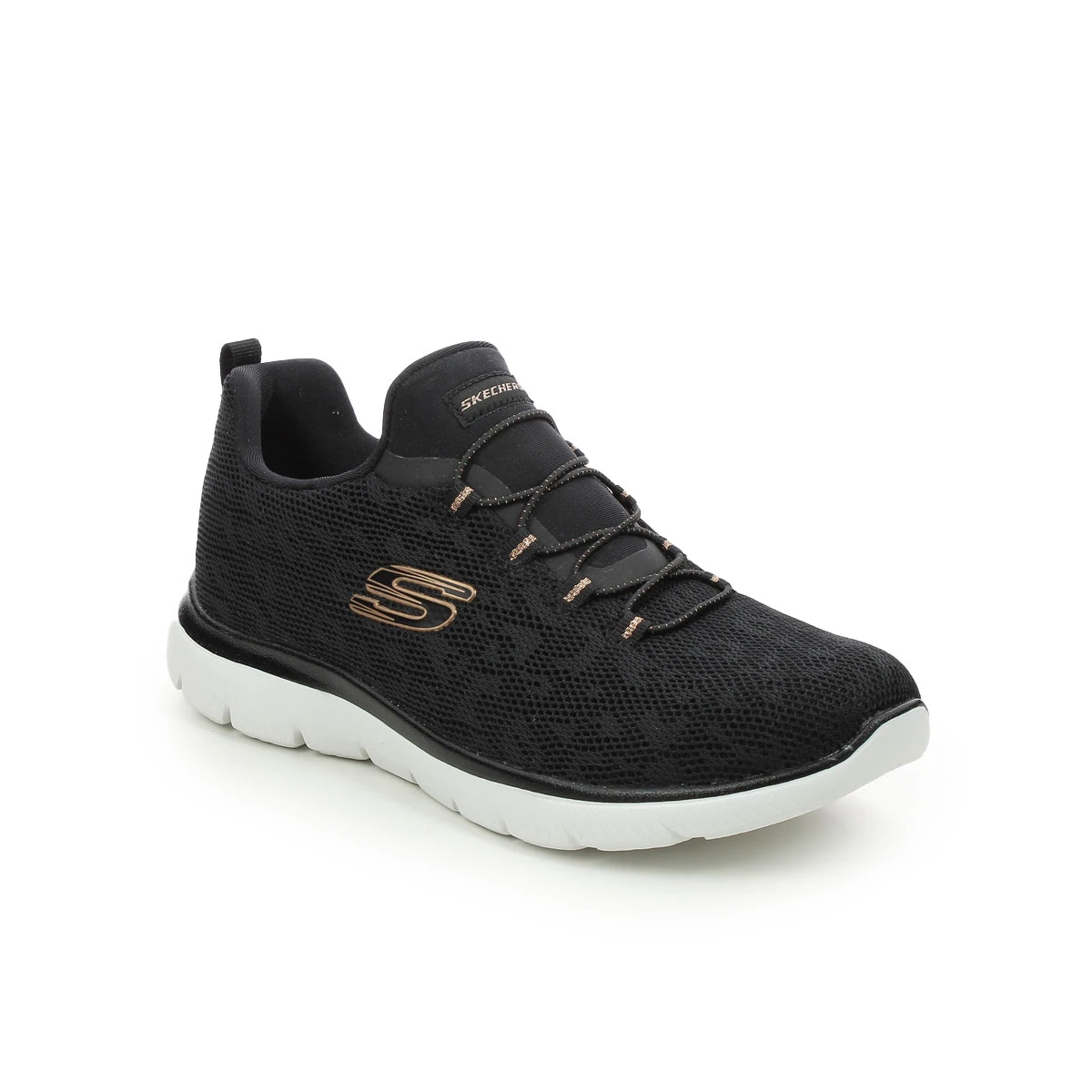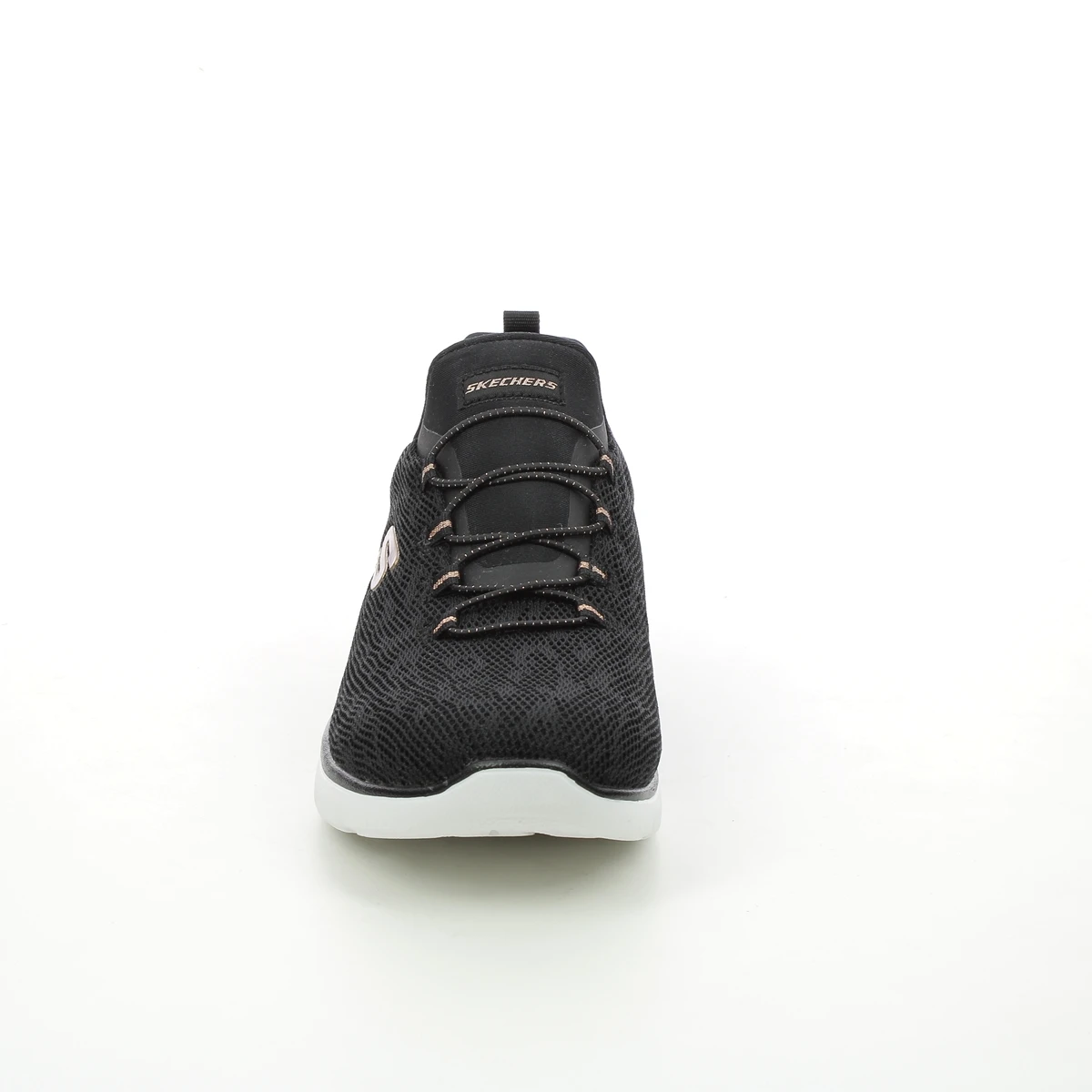 The Skechers 149037 Summits Spot womens black trainers are sporty and stylish. The slip-on trainers are perfect for days when you need to dash out the door and the elastic laces ensure a snug fit. The soft lining and memory foam footbed ensure comfort with every step whilst the shock absorbent outsole is lightweight and flexible.