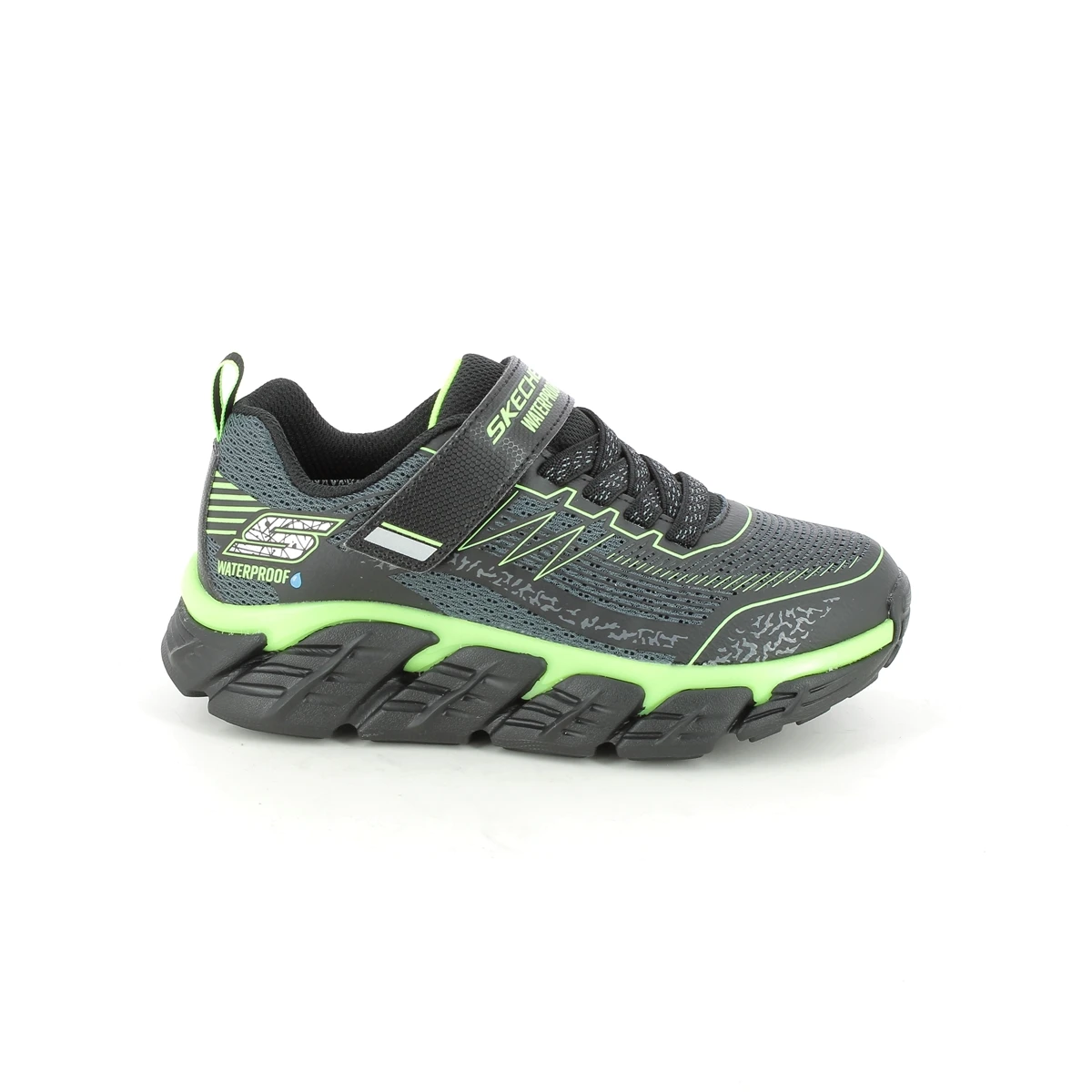 Skechers 403805L TECH GRIP TEX boys waterproof trainers are comfy and practical. These waterproof Skechers have a charcoal black mesh fabric upper with high quality man-made overlays for additional durability. The waterproof membrane helps to keep feet stay dry whilst the elastic laces and Velcro strap ensures a secure and adjustable fastening. The black outsole has distinctive cleating for improved grip too.