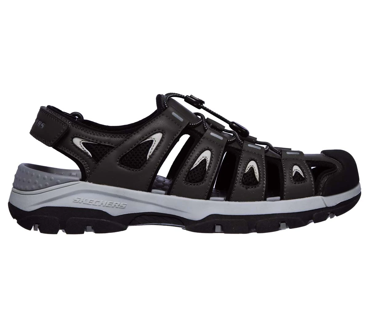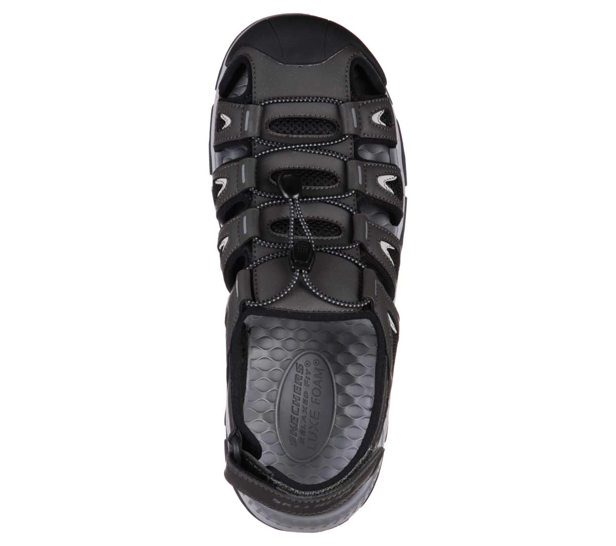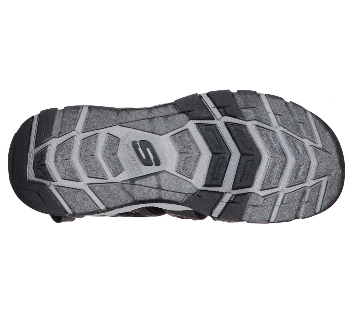 The Skechers Tresmen Outseen mens closed toe sandals are comfortable and wider fitting. These Skechers men’s sandals have a closed toe, perfect for those who wish to have a little more protection for the feet when exploring the outdoors. The wide fit design offers additional space, whilst the cupped heel and grooved outsole provides improved stability underfoot. The bungee lace fastening is adjustable whilst the Velcro strap at the heel is easy to fasten.