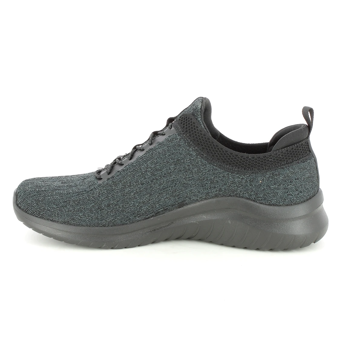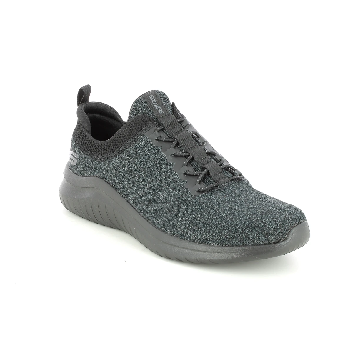 The Skechers 232206 ULTRA FLEX 2.0 mens black trainers are a supportive style. These memory foam mens Skechers have a black heathered knit fabric upper which is flexible and breathable whilst the elastic lace offers a comfy stretchy fit. The mens slip on Skechers have a cushioned collar and tongue for a snug fit and the air cooled memory foam footbed provides superb comfort underfoot. These mens black Skechers also benefit from being machine washable and the lightweight sole unit is flexible too.