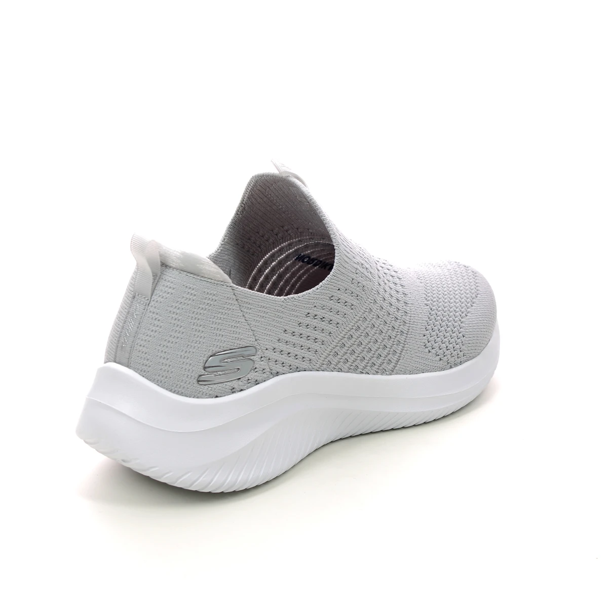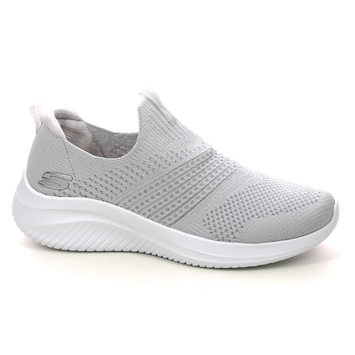 The Skechers 149855 Ultra Flex 3.0 womens light grey trainers are easy to wear thanks to the stretch knit upper and slip on design