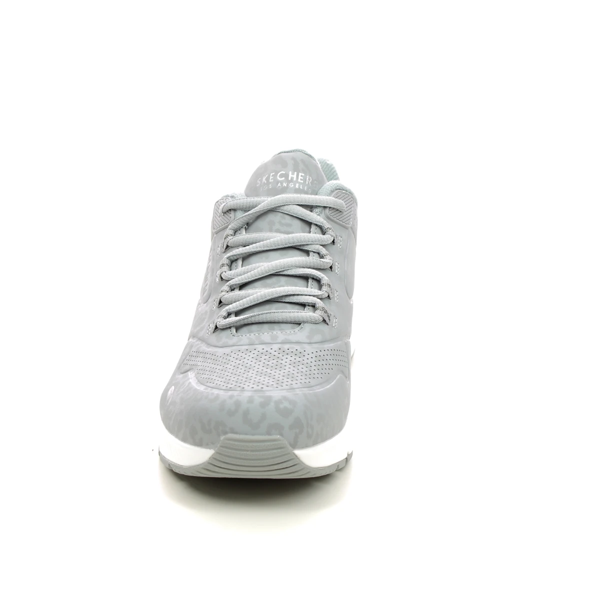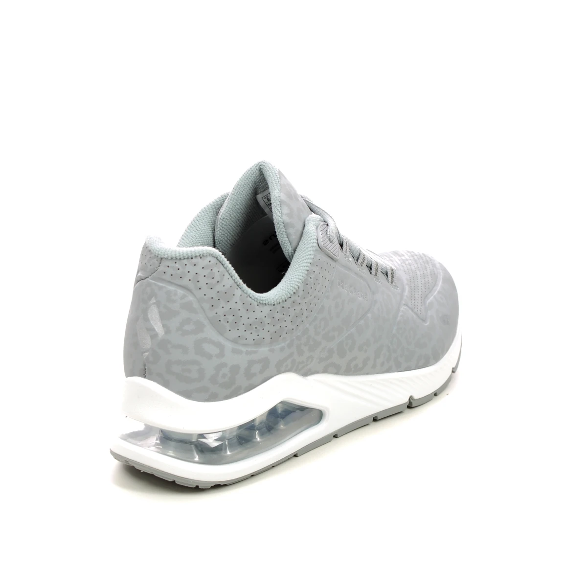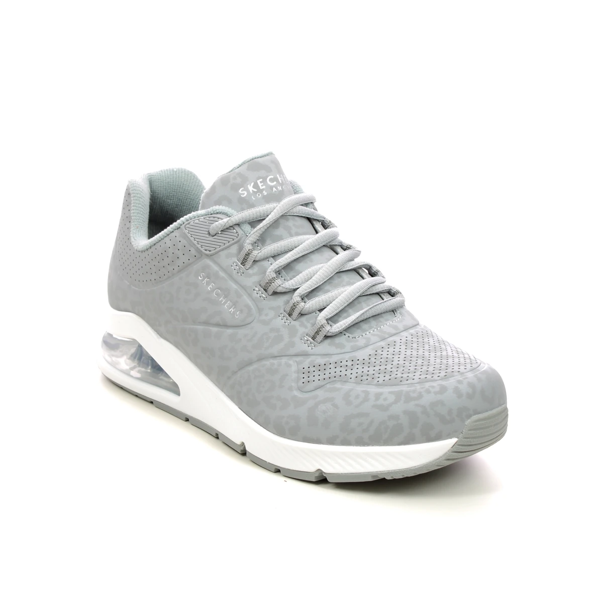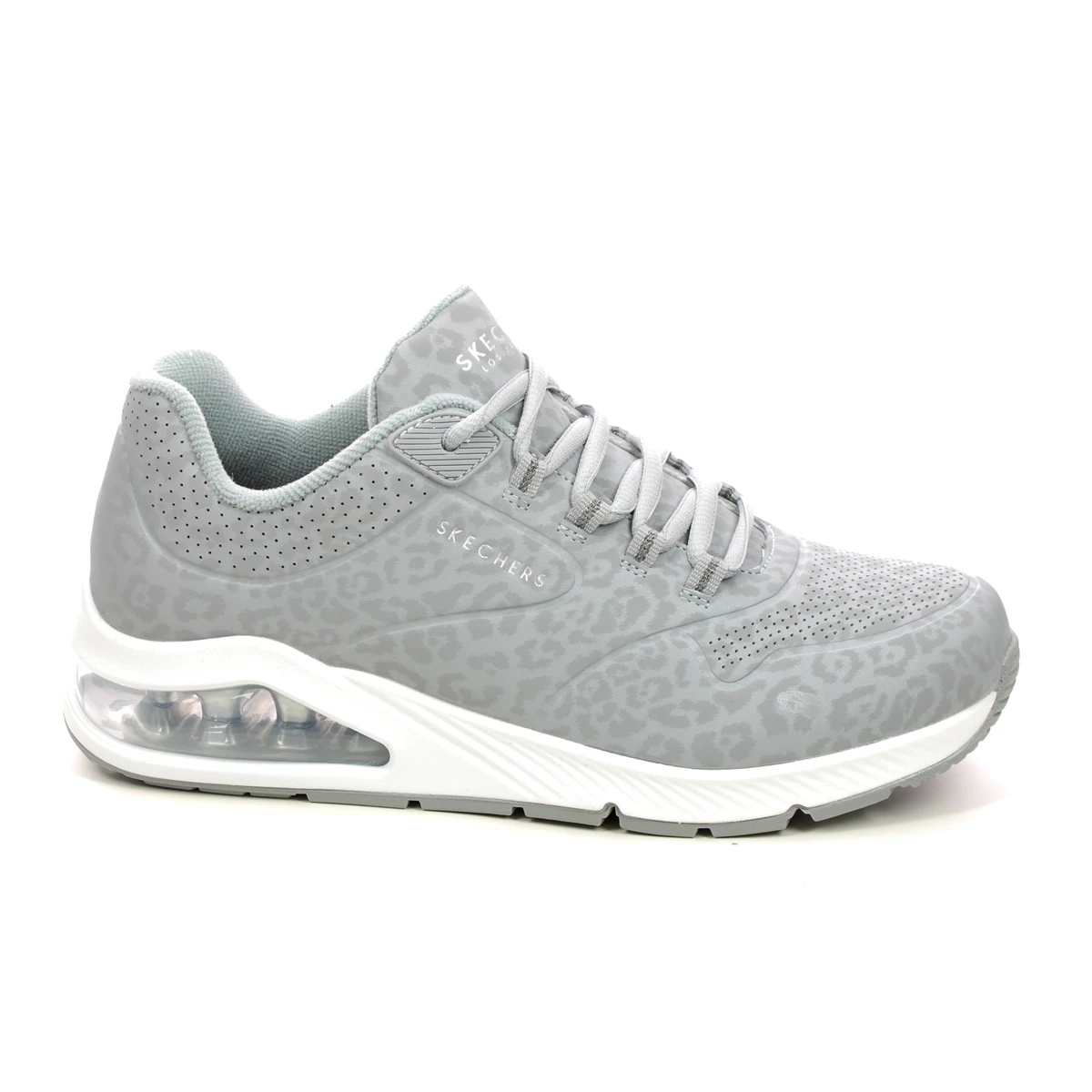Skechers Uno 2 Leopard women’s grey trainers are stylish and versatile. These women’s animal print trainers have a grey man-made upper with a subtle leopard print pattern. These women’s wedge trainers have a 50mm wedge heel for extra height whilst the visible air chamber in the contrasting white sole unit offers excellent support underfoot.