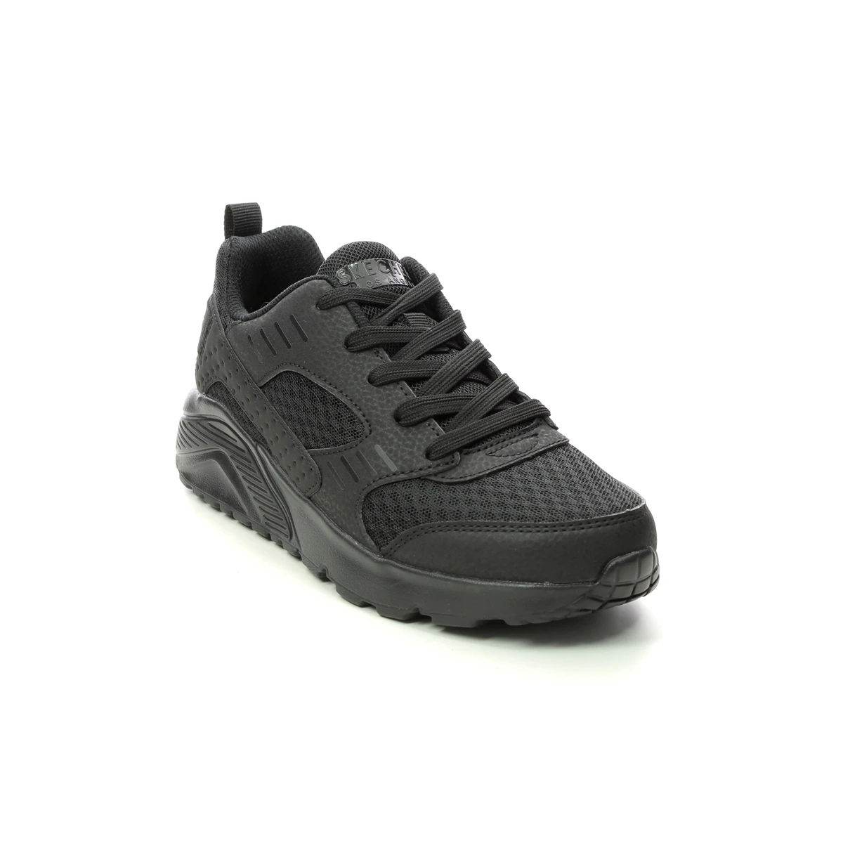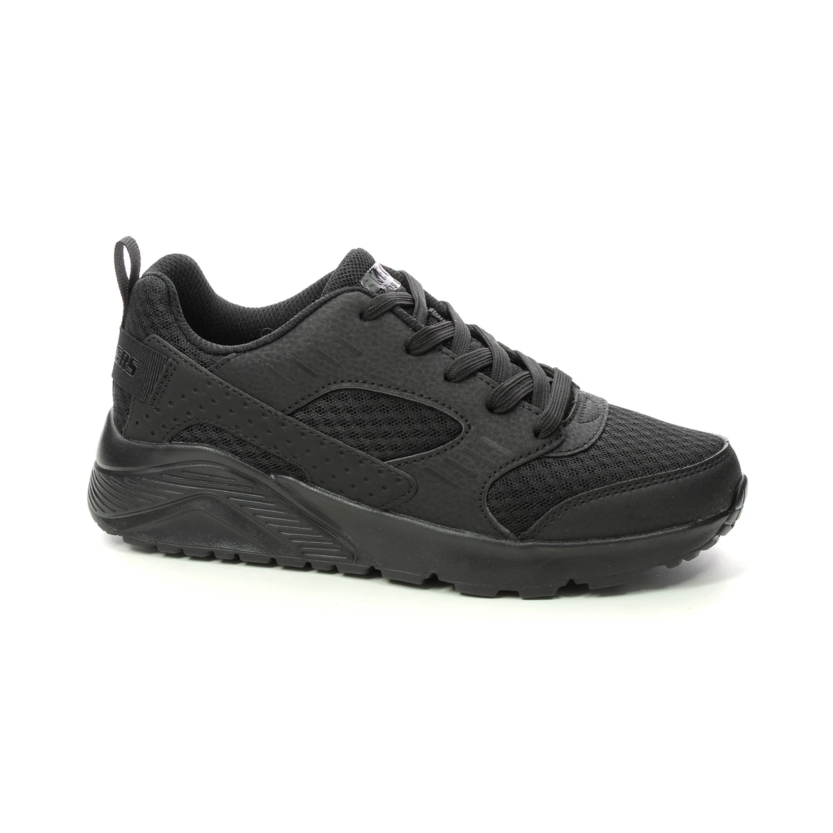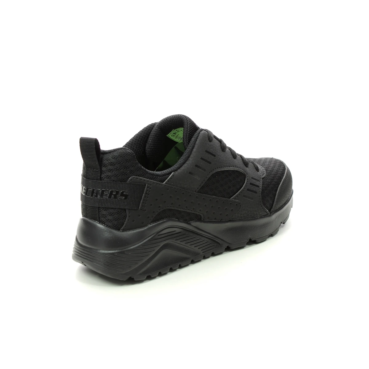 Skechers 403697L Uno Lite Lace boys black trainers are fully laced and machine washable.