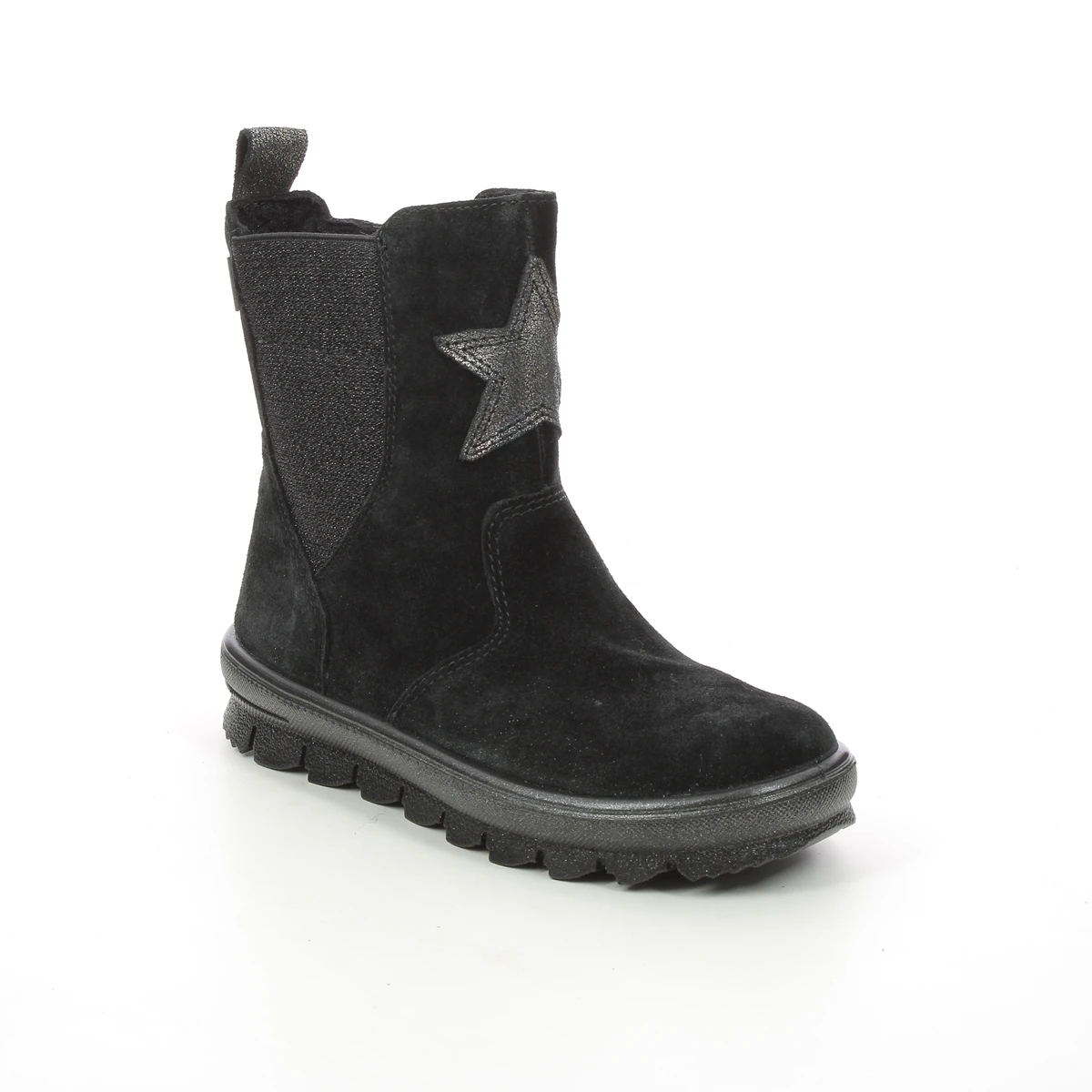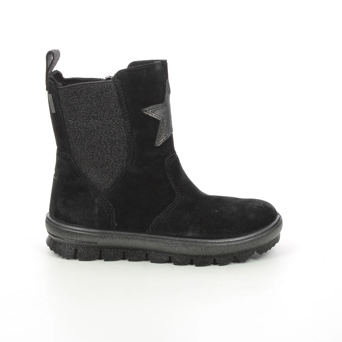 Superfit FLAVIA STAR GORETEX girls black boots are a cosy choice for wintry weather. These Superfit girls winter boots feature a Gore Tex lining which is fully waterproof and breathable to keep your little ones feet warm and dry. Details include a decorative buckle and strap a metallic star emblem and soft fluffy lining that just oozes wintery charm. The padded footbed ensures cosy comfort and the cleated sole unit offers improved grip and traction.