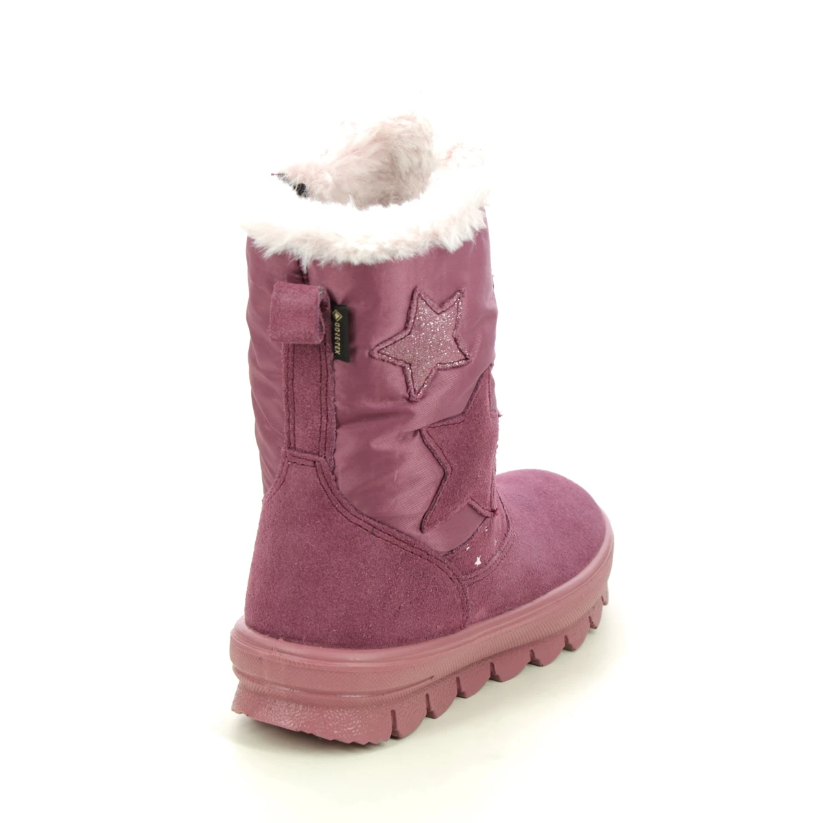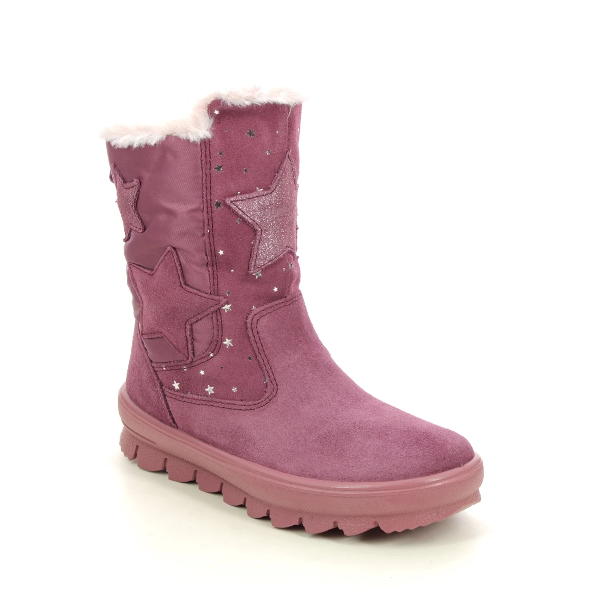 Superfit Flavia Star Gtx girls pink boots are fun and practical. These girls waterproof boots have a suede leather upper decorated with stars and a fluffy faux fur lining. The interior zip allows easy foot entry and fastening whilst the Gore Tex membrane is guaranteed to keep little feet dry.