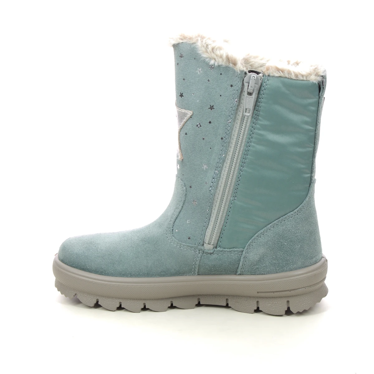 Superfit Flavia Star GTX girls blue boots are perfect for the snow. These girls snow boots have a soft suede leather upper in light blue with star details and a cosy faux fur lining. The interior side zip offers an easy fastening, whilst the waterproof Gore-Tex membrane and cleated sole add practical elements.