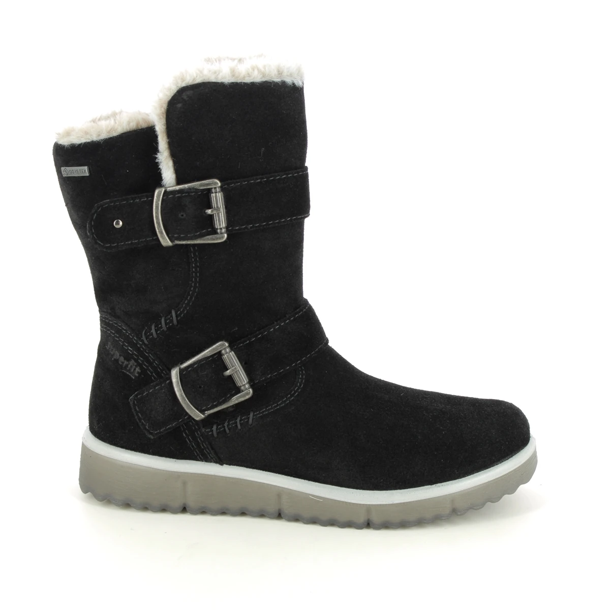 Superfit LORA GORETEX girls winter boots offer cool fashionable styling while also being practical for the winter weather. The Superfit LORA style has been lined with a Gore Tex membrane which is fully waterproof and breathable as well as the cosy warm inner lining means these boots will keep feet warm and dry. The LORA GORE TEX winter boots feature a zip fastening for ease of wear and the black suede upper has been adorned with 2 buckles for a modern biker style. These boots are available in the older girls-young adults size range.