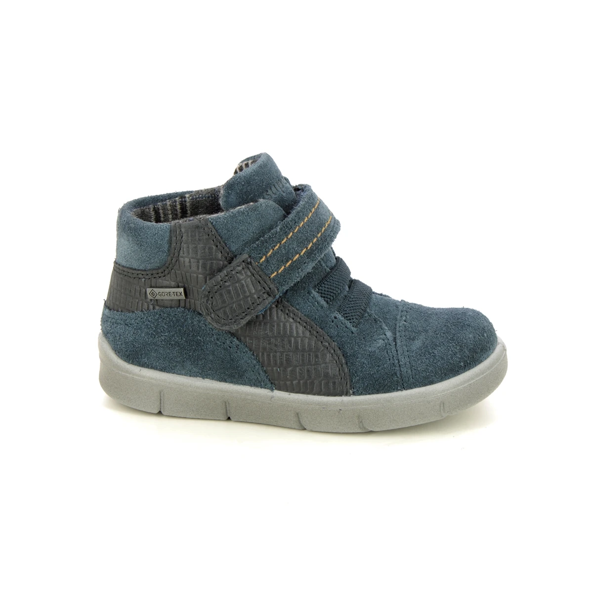 Superfit Ulli Bungee Gtx boys blue boots combine sporty style with practical elements. These boys Gore tex boots are waterproof and the suede leather upper is breathable too. There is a bungee lace and Velcro strap for easy fastening.