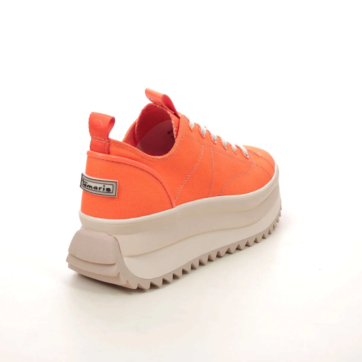 Tamaris Starry Hike women’s orange trainers are a real showstopper. These women’s platform trainers have a distinctive ridged sole unit and platform sole measuring 55mm for extra height underfoot without compromising on comfort. These women’s orange sneakers have a textile upper in a gorgeous sunset hue, with white laces for easy fastening.