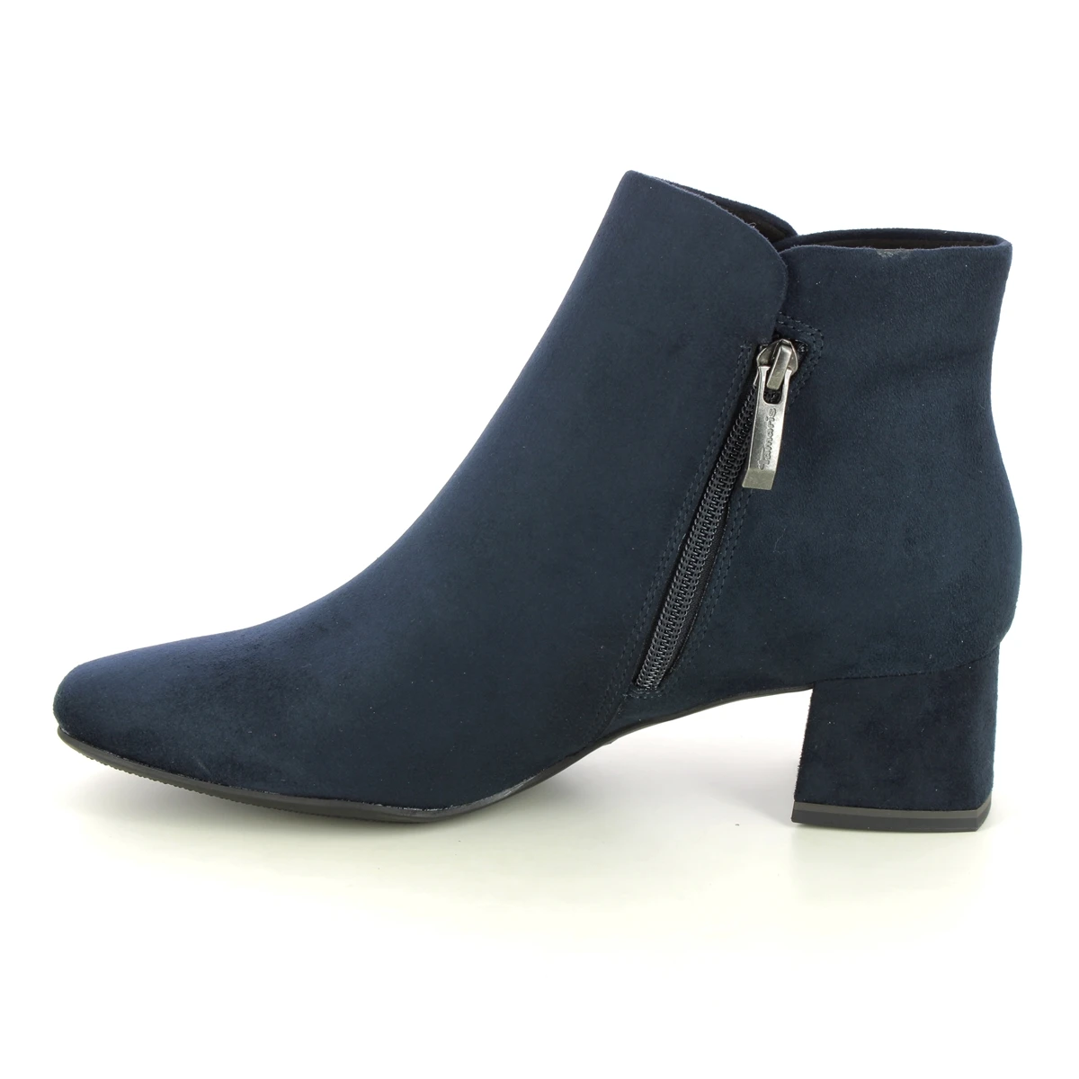 Tamaris Antonella women’s navy heeled boots are the perfect companion to denim. These women’s navy ankle boots have a soft textile upper with a flared heel measuring a wearable 45mm.