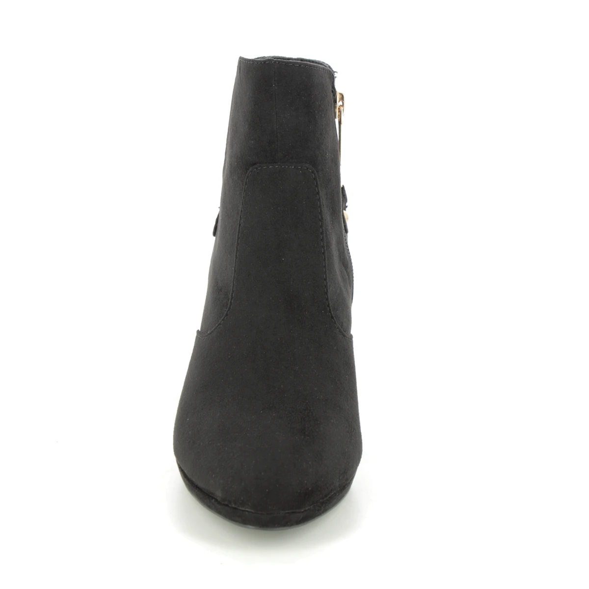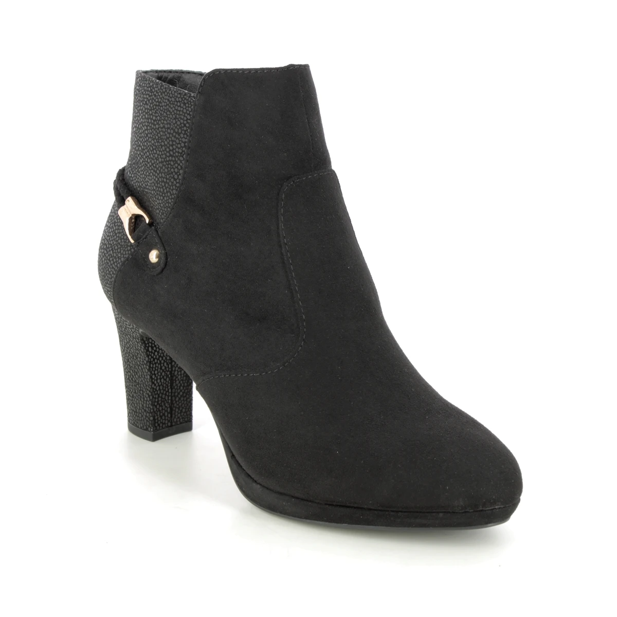 Tamaris Lycora women’s black heeled boots are perfect for nights out in the colder months. These women’s high heeled boots have a textile upper and lining, with a subtle shimmering panel at the back. There is a stylish woven rope and buckle detail that wraps around the heel for additional interest. The interior side zip allows for effortless foot entry whilst the 75mm heel offers notable height.