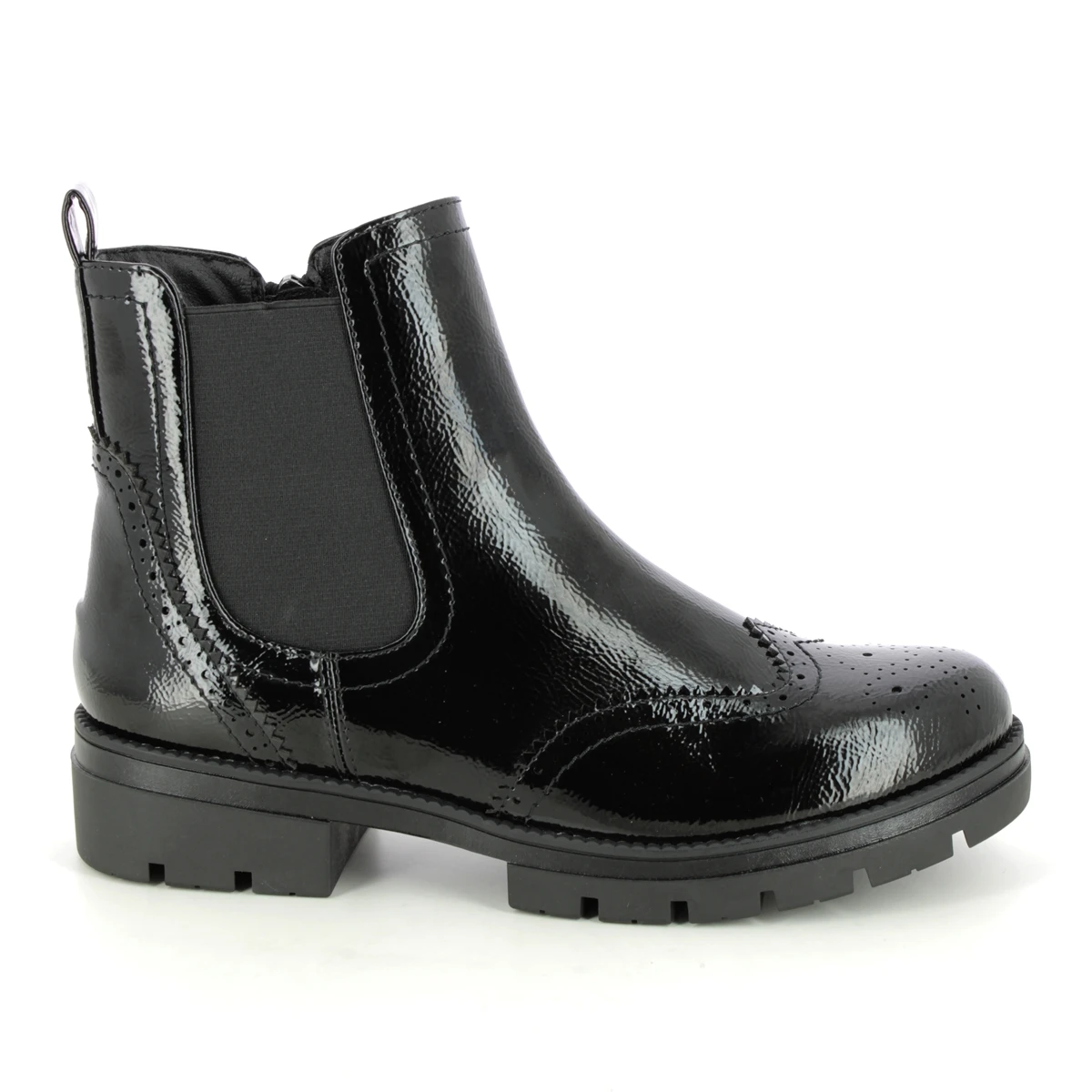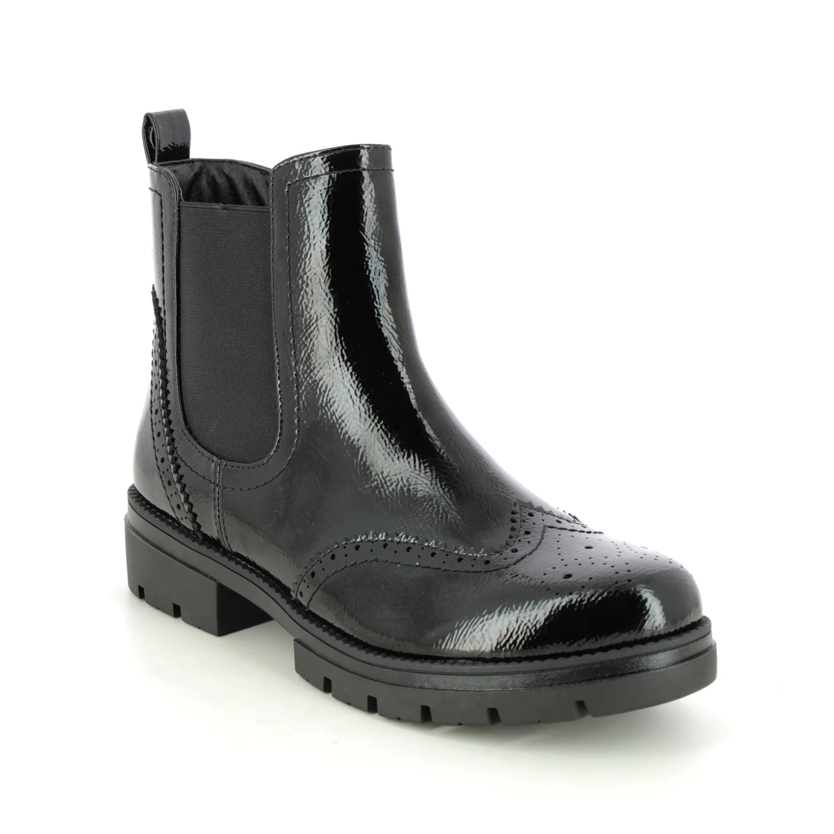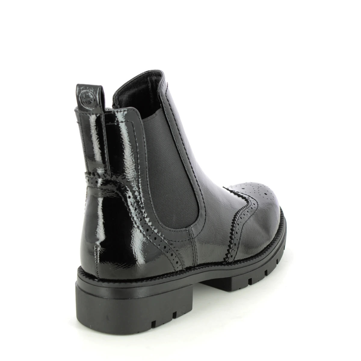 The Tamaris Neria women’s black patent Chelsea boots are a contemporary twist on this classic style. These women’s black Chelsea boots feature a chunky cleated outsole which measures 35mm at the heel. Pair with your favourite midi dress or dress down with mom jeans and a cardigan for a chic but effortless outfit.