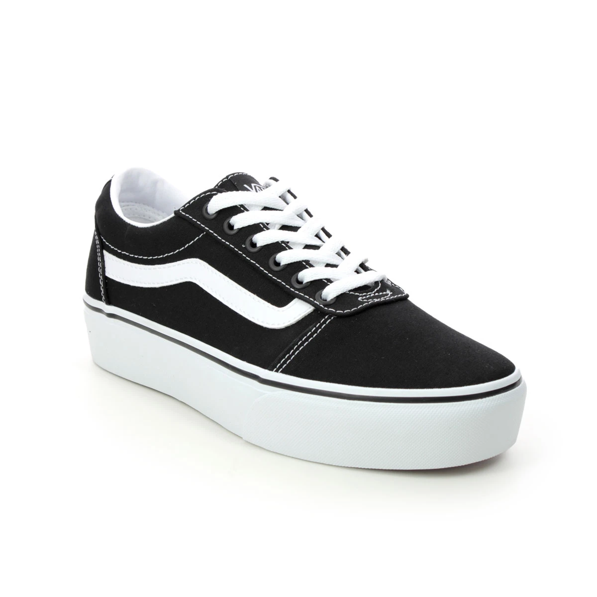 Vans Ward Platform womens trainers give you the same great Vans style with a bit of extra height. The uppers are made from canvas with contrast stitch detailing and a white side stripe. There is a textile lining a lightly padded collar and a cushioned insole for comfort. The sole is made from vulcanised rubber and has the signature waffle outsole that gives improved grip.